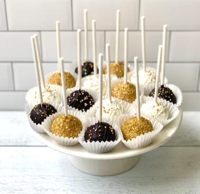 A Trio of Cake Balls with three distinct flavors: A refreshing and creamy matcha cake for our heritage and home in Shirogane, A vibrant spice cake filled with Cinnamon, nutmeg and ginger that represents our spicy staff, and a Starrfruit cake that is sweet and vibrant like our Owner Selya Starr. All three are covered in a creamy chocolate coating with gold sprinkles just like our Gold gilded doors at The Syndicate